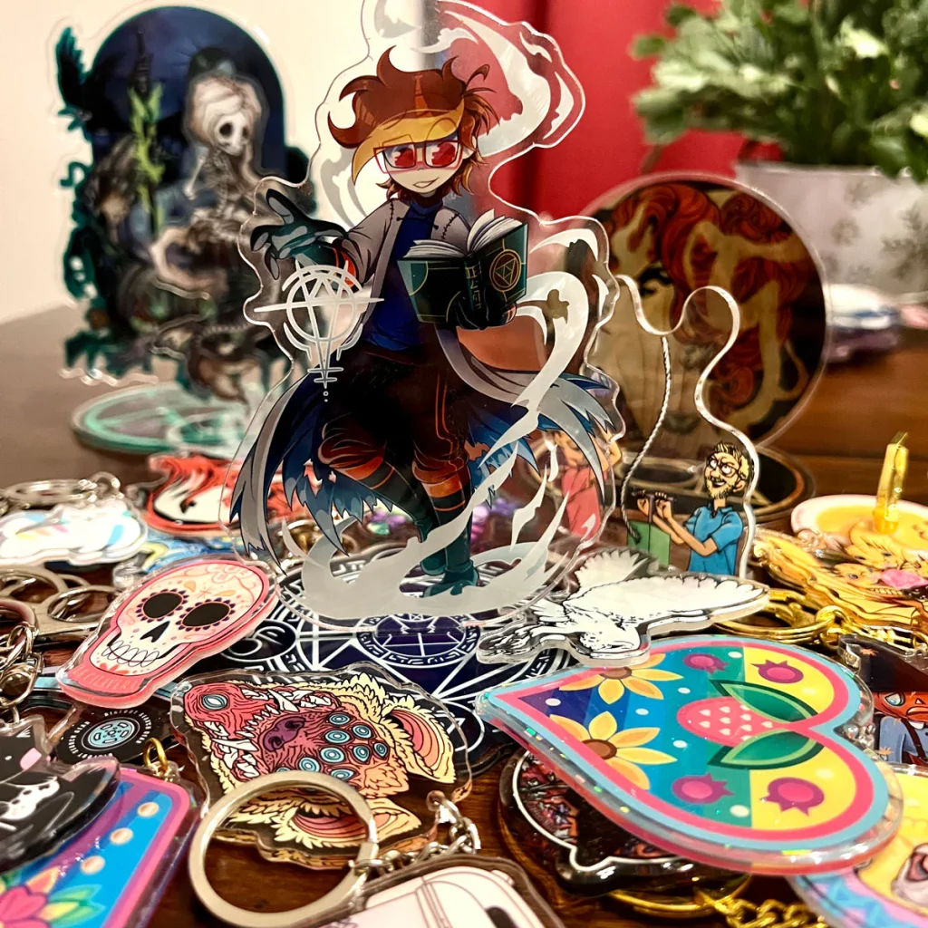 Acrylic standees offer strong visual appeal and collectible value, making them ideal for character displays and artist merchandise.