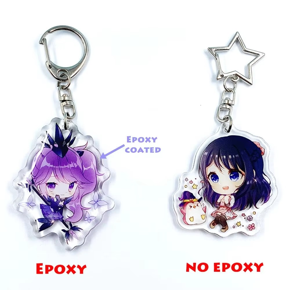 epoxy acrylic keychain vs normal acrylic keychain comparison