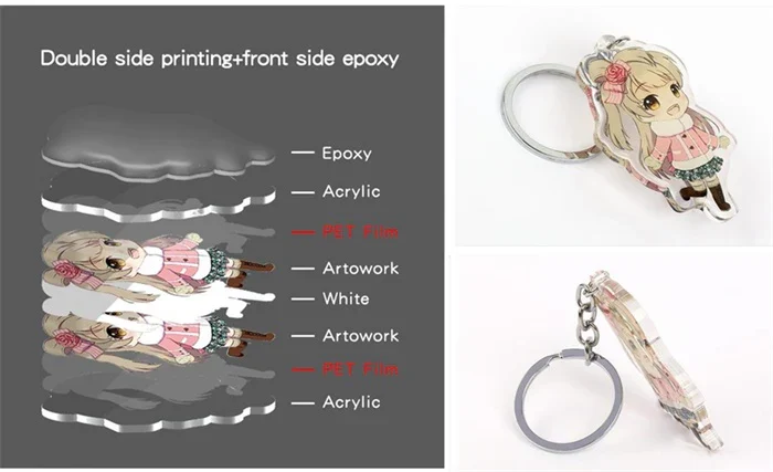 double sided vs epoxy acrylic keychain comparison
